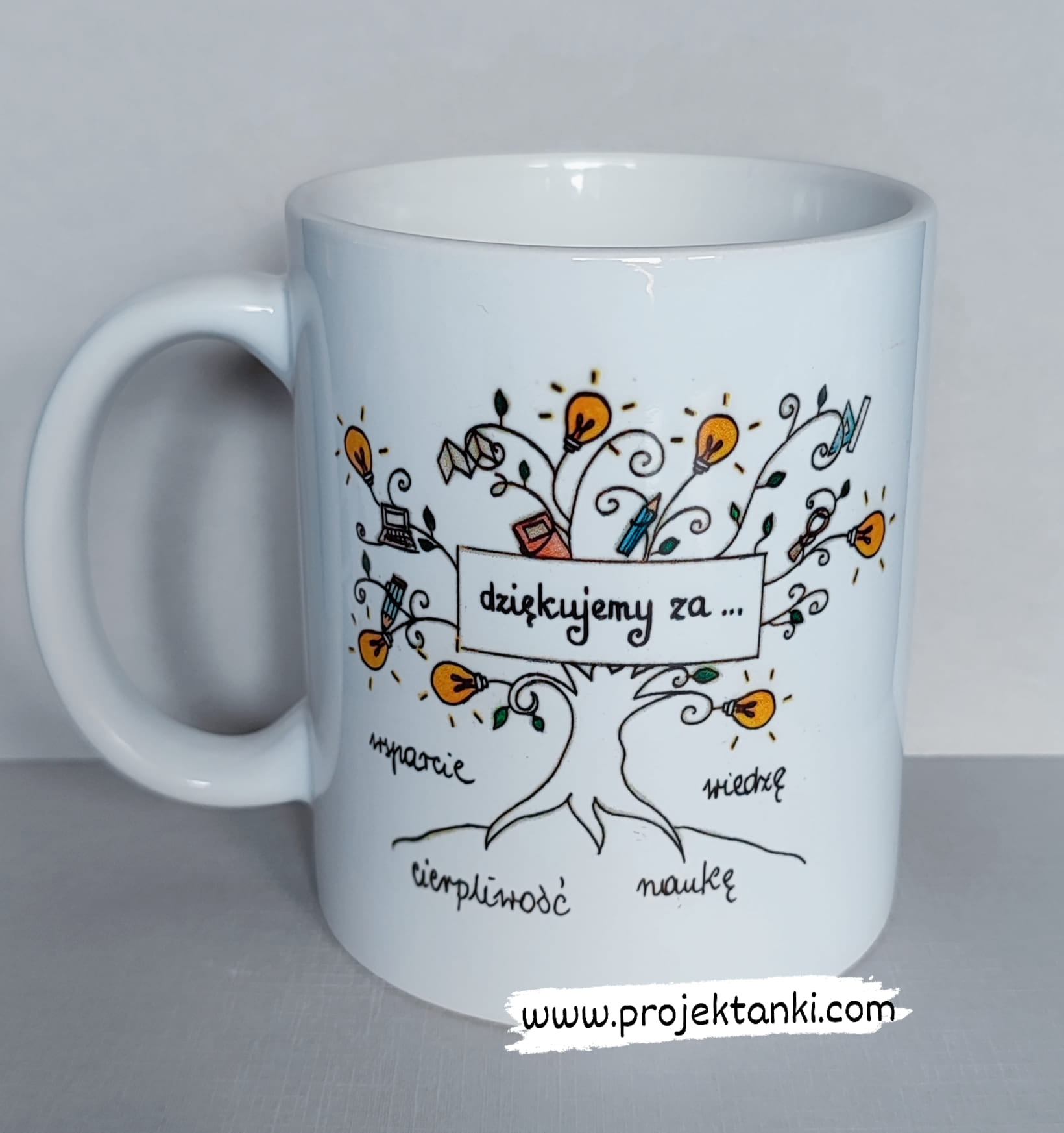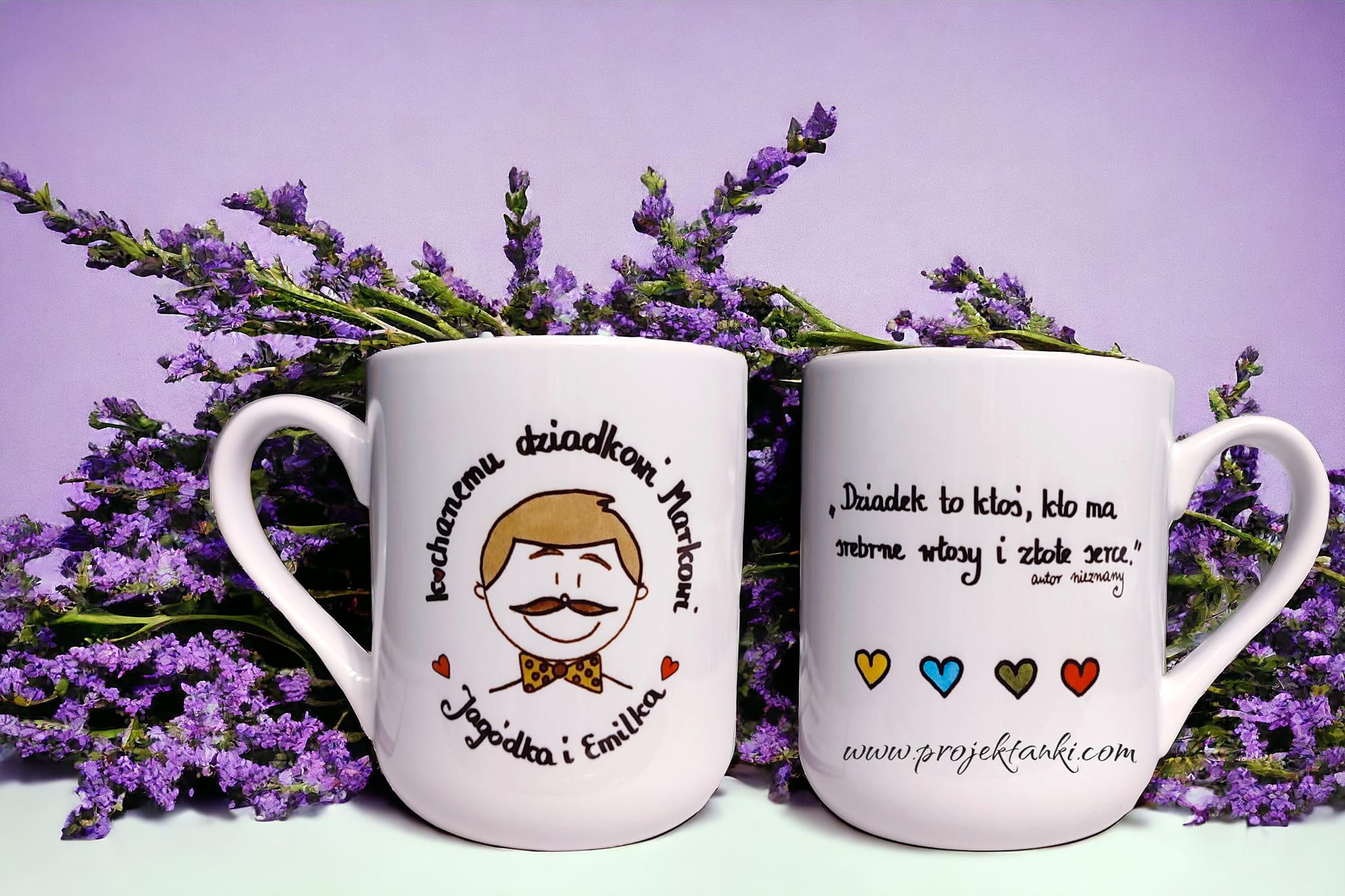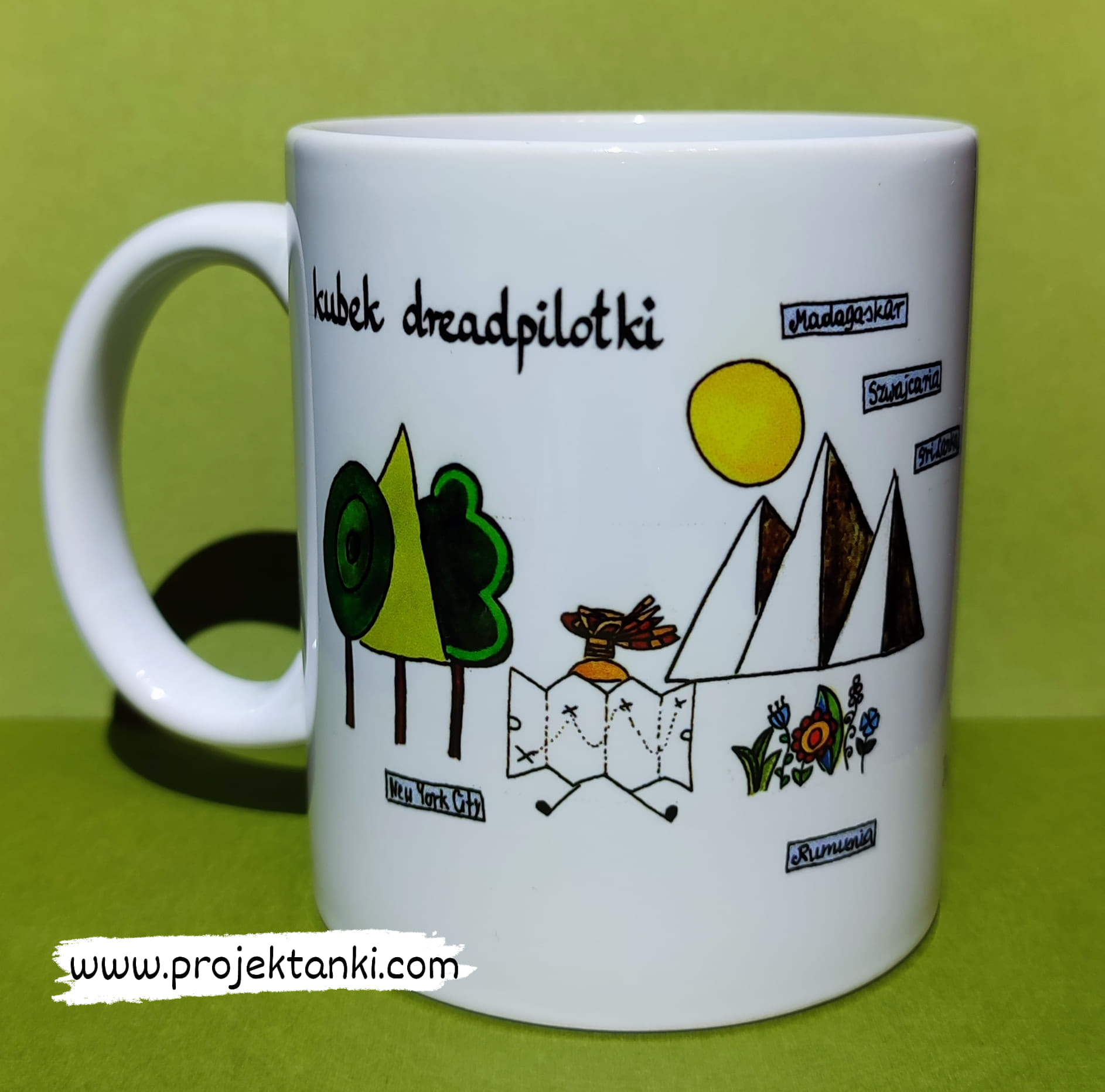 Kubki wykonane metodą sublimacji z grafiką wykonaną ręcznie według autorskiego projektu.