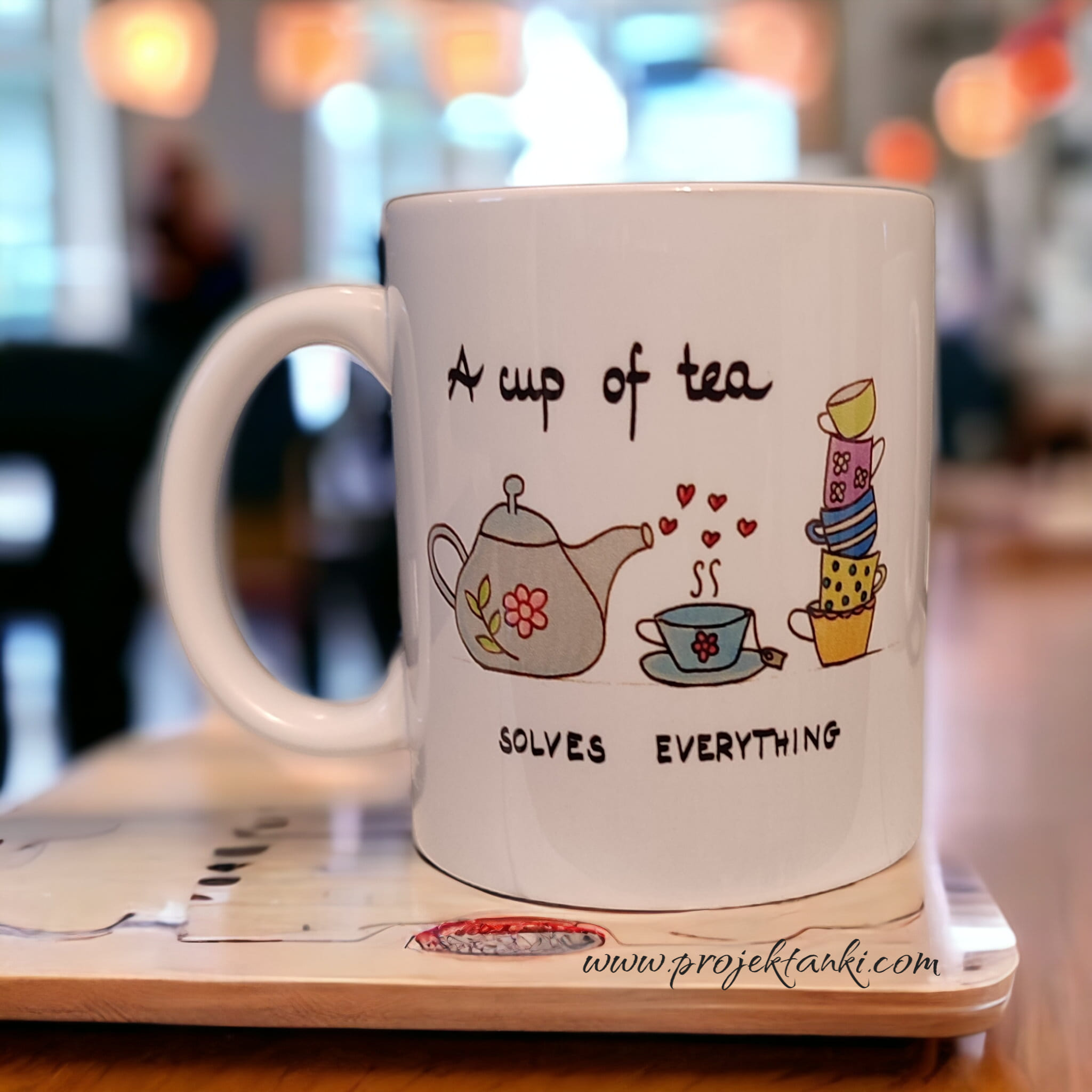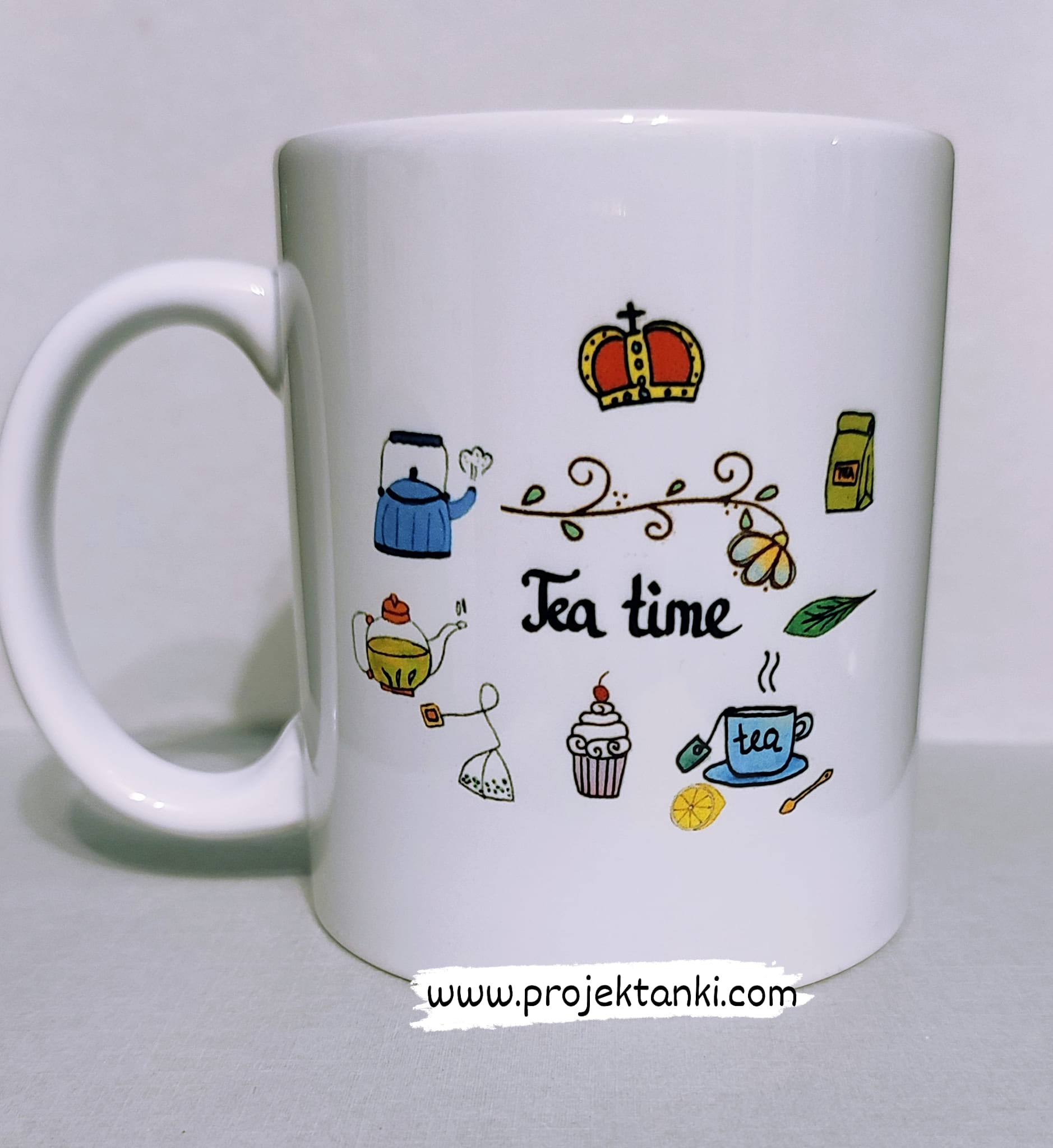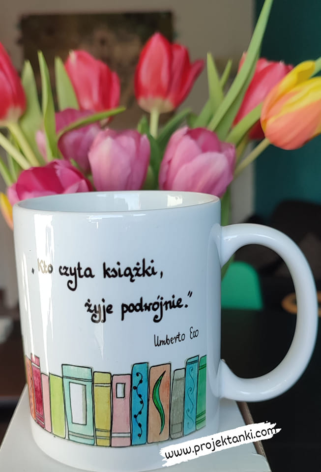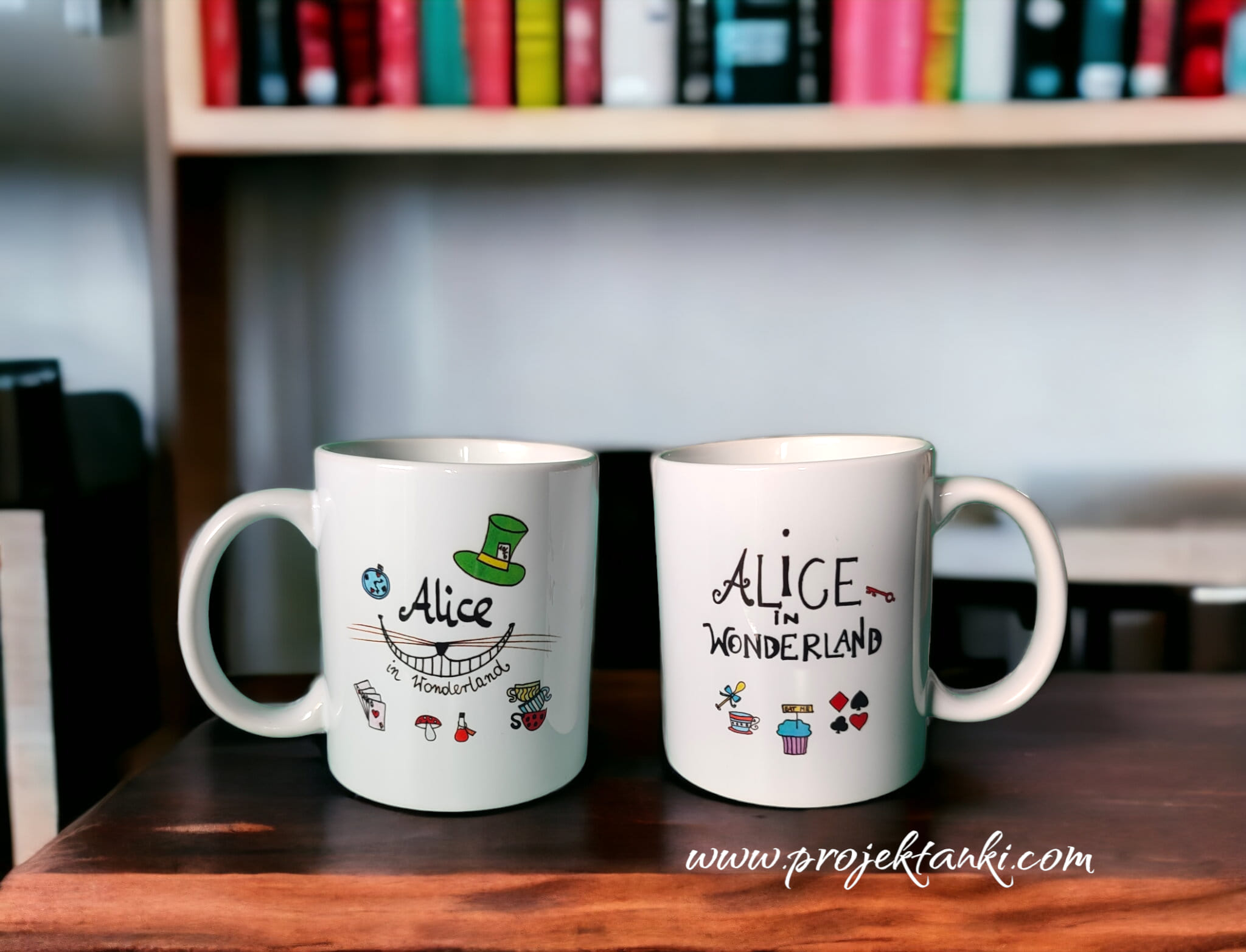 Kubki wykonane metodą sublimacji z grafiką wykonaną ręcznie według autorskiego projektu.