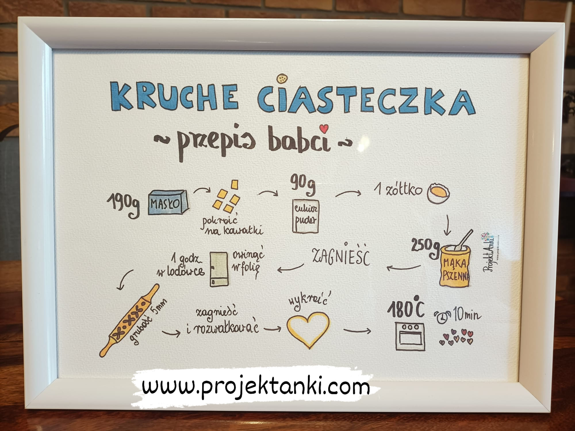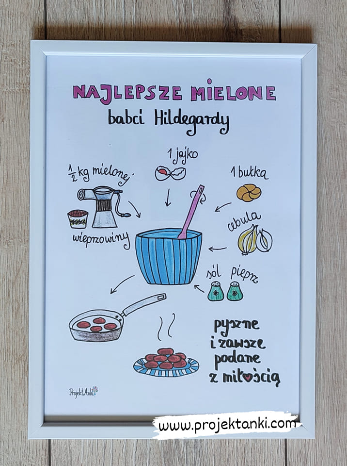 Przepisy w ramce ze szkłem. Format pracy A4.