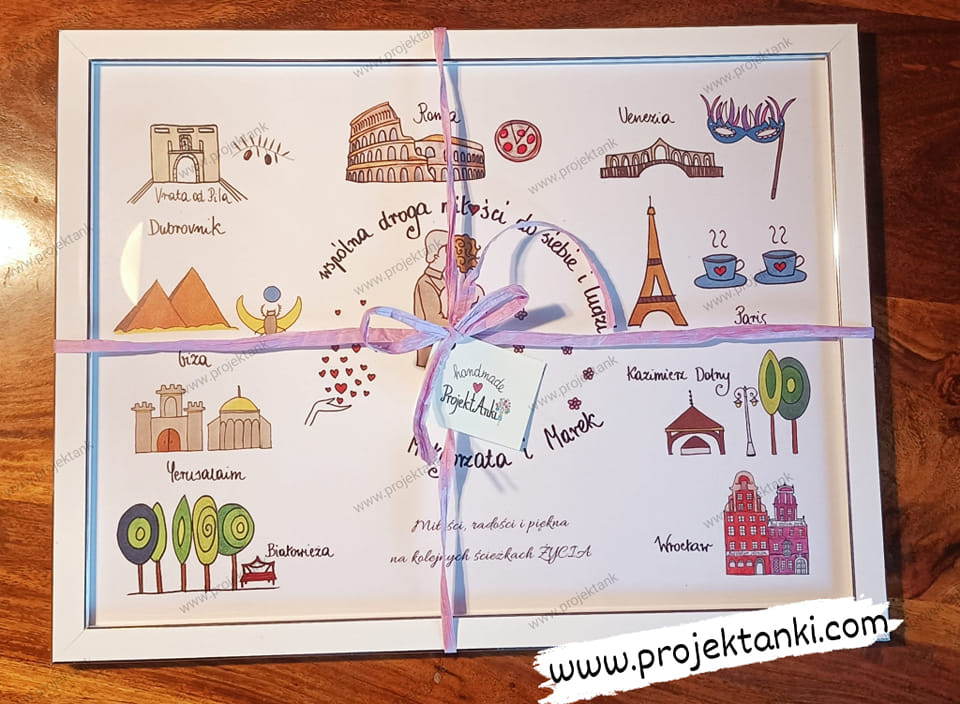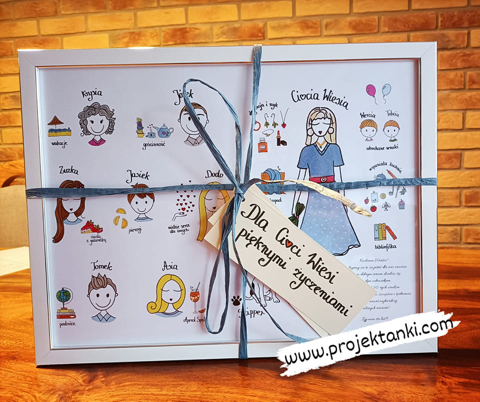 Bileciki prezentowe z grafiką wykonaną ręcznie według autorskiego projektu.