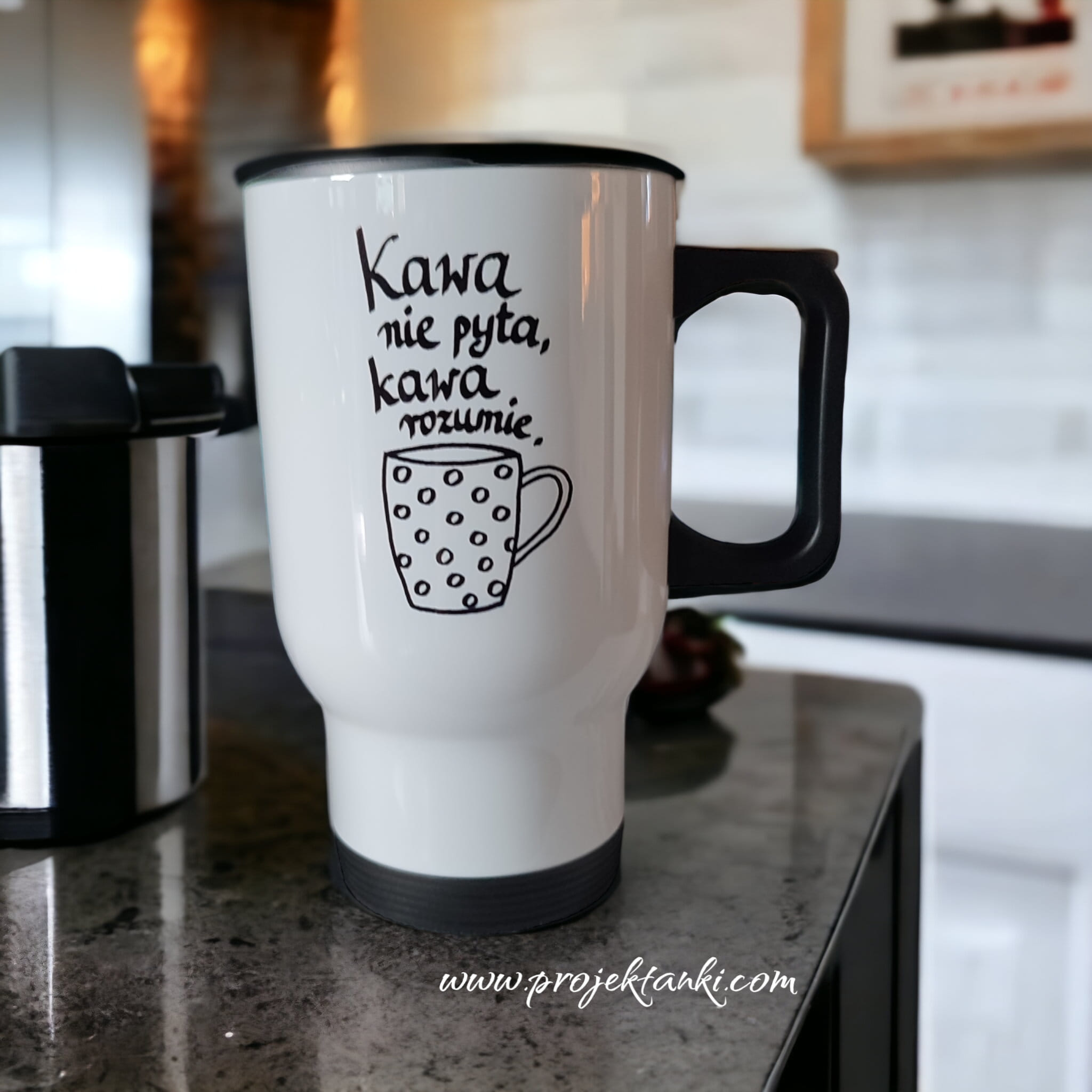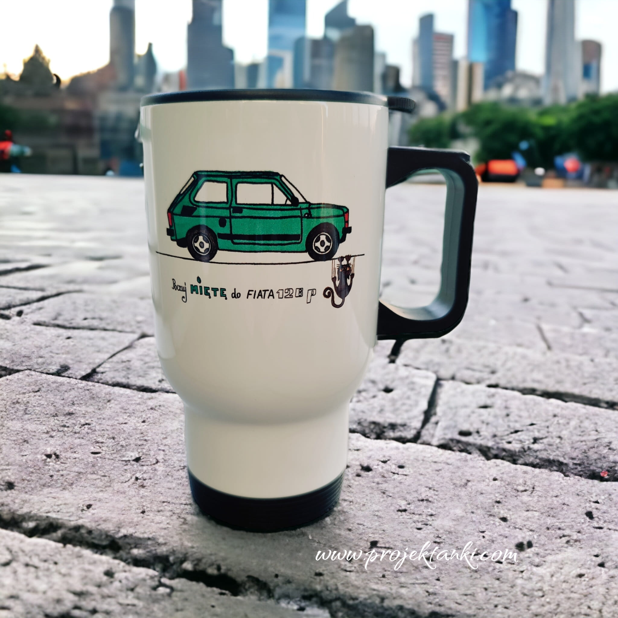 Kufle i kubki termiczne wykonane metodą sublimacji z grafiką wykonaną ręcznie według autorskiego projektu.