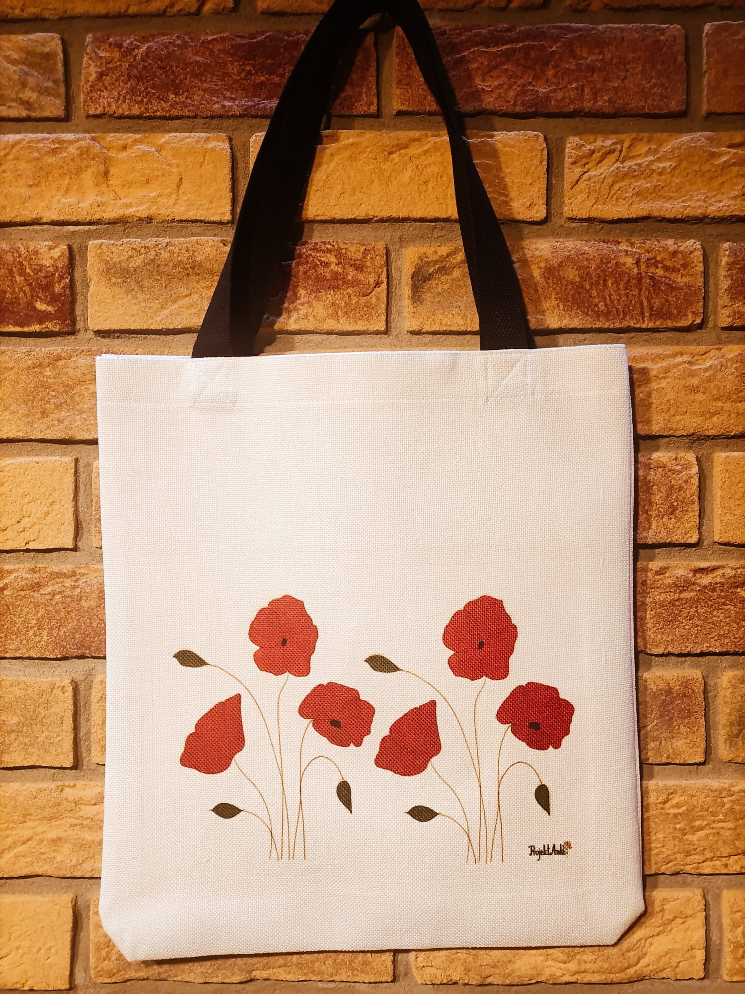 Torby lniane z dowolną grafiką wykonaną ręcznie według autorskiego projektu na życzenie klienta.