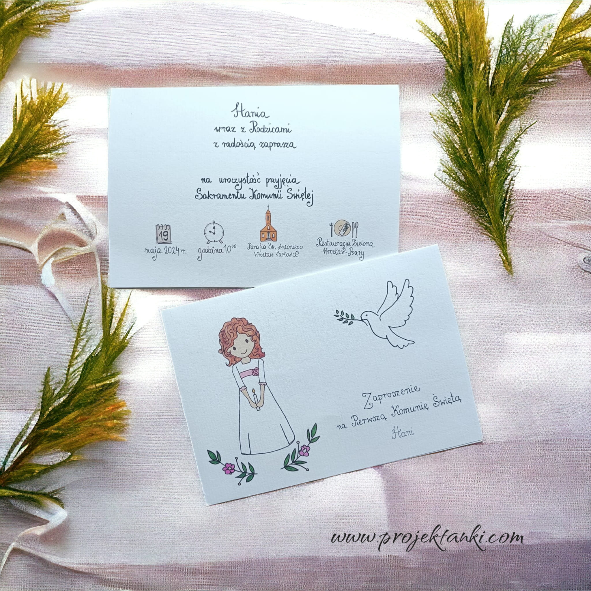 Zaproszenia z grafiką wykonaną ręcznie według autorskiego projektu w formacie A6.